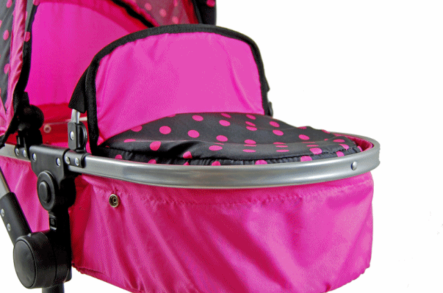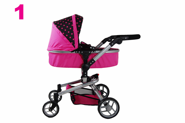 Ratiņiem ir grozāmi riteņi un grozāms rokturis. Pārveidojama gondola ar regulējamu gondolas slīpumu.